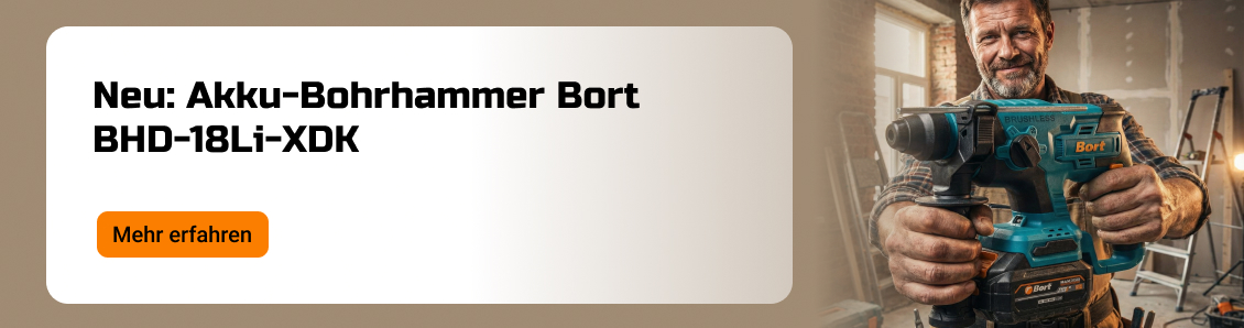 WeiterlesenLeicht. Praktisch. Genau so, wie ein Bohrhammer für die Arbeit sein sollte. BORT BHD-18Li-XDK – leicht, gut ausbalanciert und ermüdet nicht, wenn in der Höhe gearbeitet oder das Werkzeug mit...